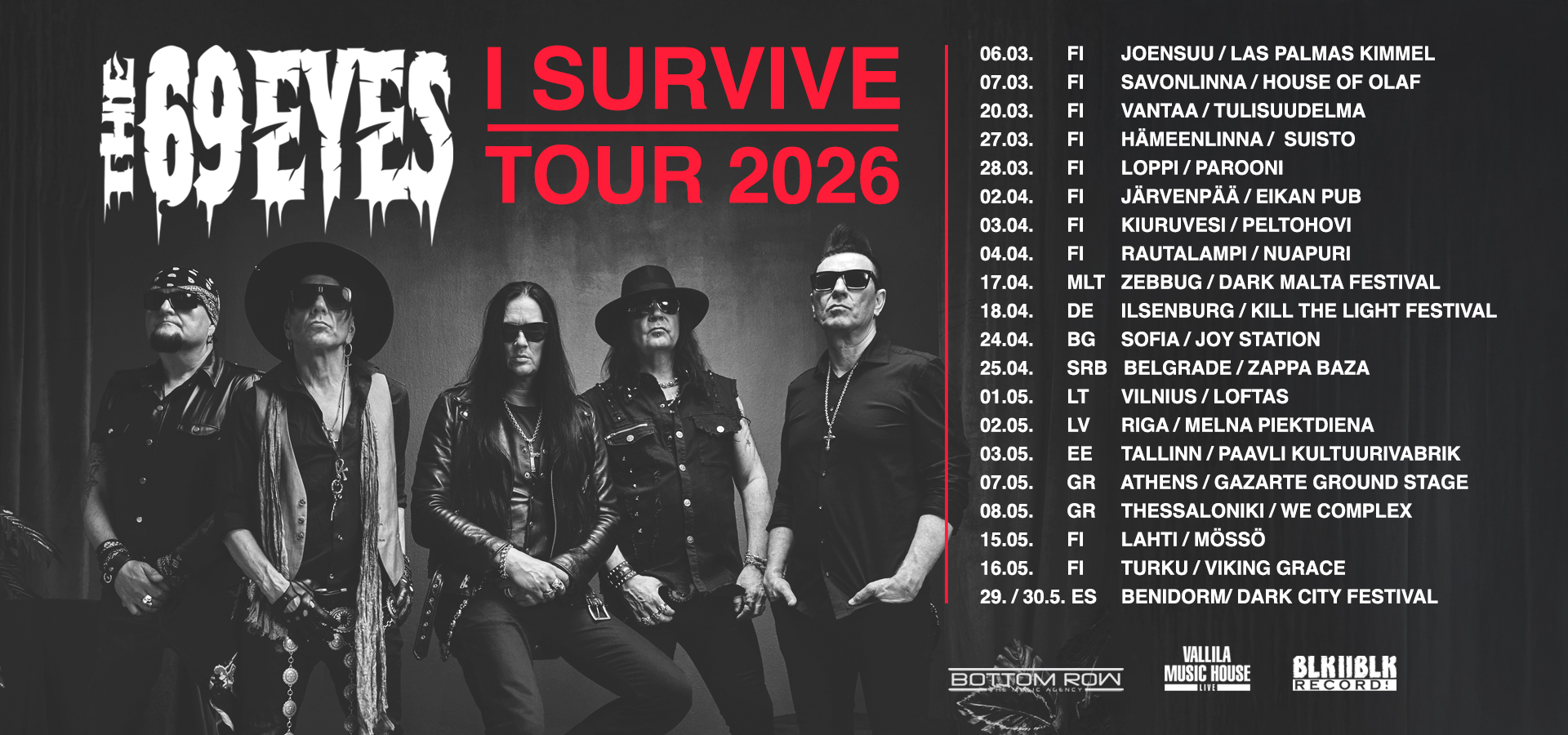 Eurooppaa hiljattain D-A-D:n kanssa kiertänyt The 69 Eyes yllättää julkaisemalla coverin Thin Lizzy-klassikosta Cold Sweat. Kappale tulee löytymään The 69 Eyesin kesäkuun alussa julkaistavalta I Survive EP:ltä. Alkuvuodesta Euroopassa Cowpunks & Glampires -kiertueen merkeissä keikkaillut ja sen jälkeen kotimaassa kiertänyt